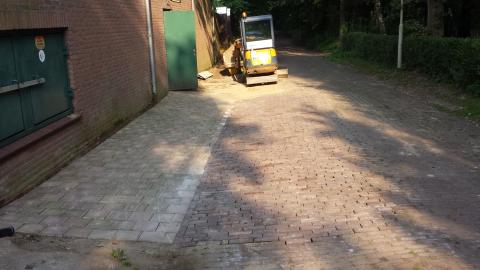 Herstraten van een parkeerstrook tbv van emballage, er was in de loop der jaren spoorvorming in gereden.