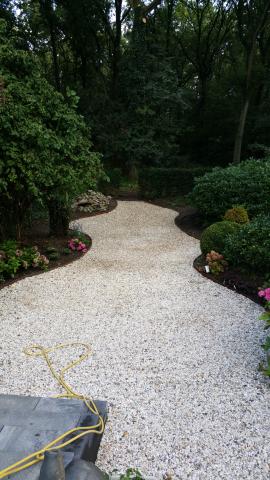 Leveren en monteren van kuntstof grindplaten, daarna afvullen met berggrind maat 8/16mm.